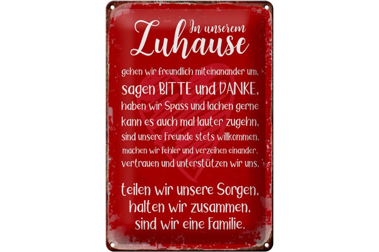 - TitelBlechschild Spruch 20x30cm Zuhause sind wir eine Familie [ORIGINAL BLECHSCHILD von FEMER]