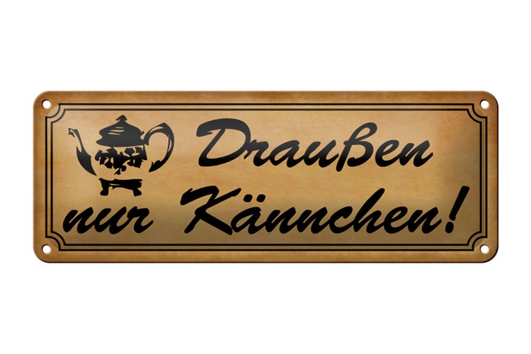- TitelBlechschild Spruch 27x10 cm Draußen nur Kännchen braun [ORIGINAL BLECHSCHILD von FEMER]