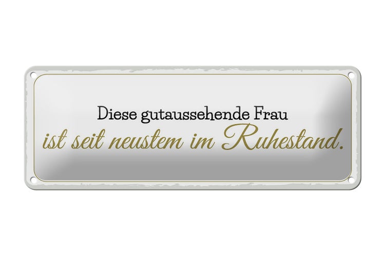 - TitelBlechschild Spruch 27x10 cm gutaussehende Frau ist im Ruhestand Dekoration [ORIGINAL BLECHSCHILD von FEMER]