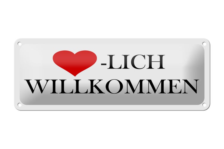- TitelBlechschild Spruch 27x10 cm Herzlich Willkommen Herz Dekoration [ORIGINAL BLECHSCHILD von FEMER]