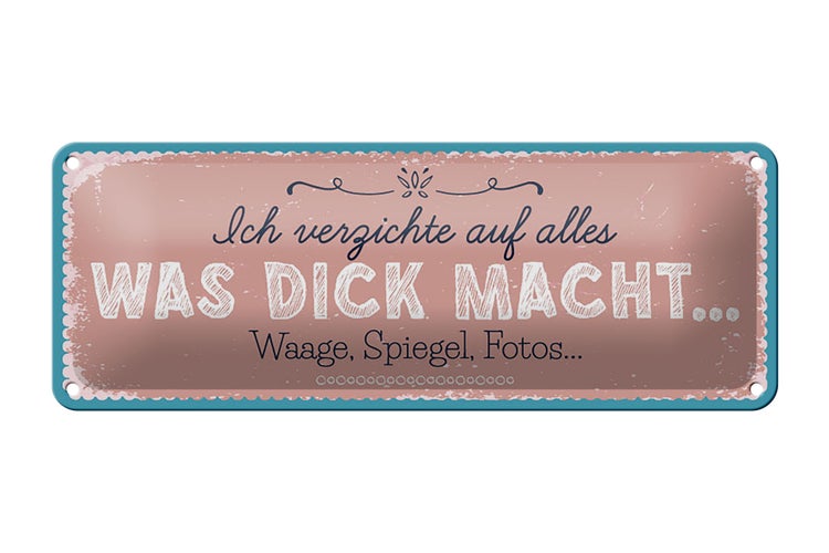 - TitelBlechschild Spruch 27x10 cm verzichte auf Waage Spiegel Fotos Dekoration [ORIGINAL BLECHSCHILD von FEMER]