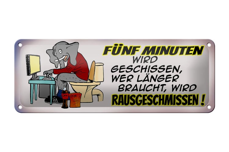 - TitelBlechschild Spruch 27x10cm 5 Minuten wird geschissen Dekoration [ORIGINAL BLECHSCHILD von FEMER]