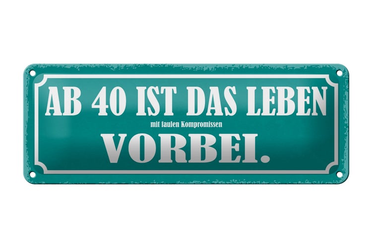 - TitelBlechschild Spruch 27x10cm ab 40 ist das Leben vorbei Dekoration [ORIGINAL BLECHSCHILD von FEMER]