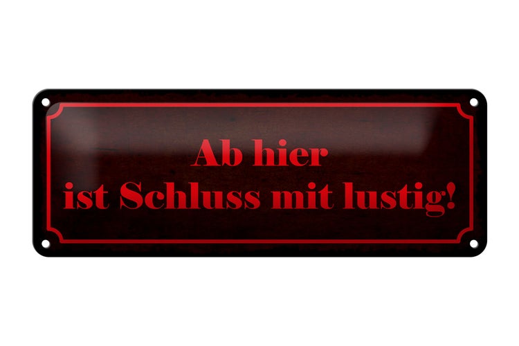 - TitelBlechschild Spruch 27x10cm ab hier ist Schluss mit lustig Dekoration [ORIGINAL BLECHSCHILD von FEMER]