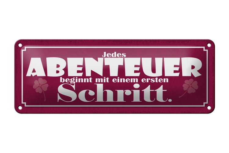- TitelBlechschild Spruch 27x10cm Abenteuer beginnt mit einem Dekoration [ORIGINAL BLECHSCHILD von FEMER]