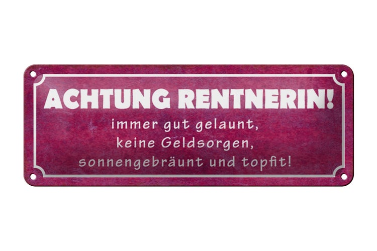 - TitelBlechschild Spruch 27x10cm Achtung Rentnerin gut gelaunt Dekoration [ORIGINAL BLECHSCHILD von FEMER]