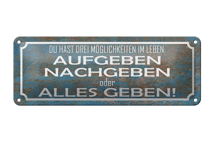 - TitelBlechschild Spruch 27x10cm aufgeben nachgeben alles geben Dekoration [ORIGINAL BLECHSCHILD von FEMER]