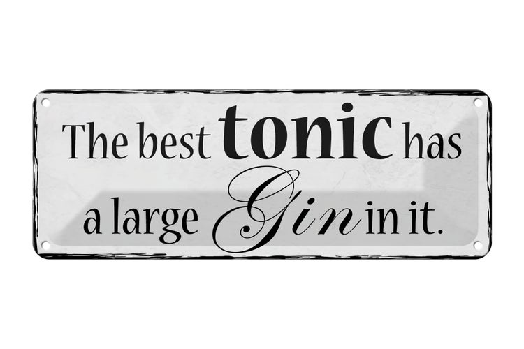 - TitelBlechschild Spruch 27x10cm best tonic has a large Gin in it Dekoration [ORIGINAL BLECHSCHILD von FEMER]