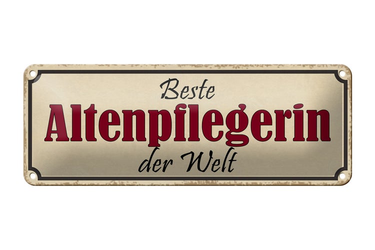 - TitelBlechschild Spruch 27x10cm beste Altenpflegerin der Welt Dekoration [ORIGINAL BLECHSCHILD von FEMER]