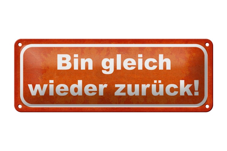 - TitelBlechschild Spruch 27x10cm bin gleich wieder zurück Dekoration [ORIGINAL BLECHSCHILD von FEMER]