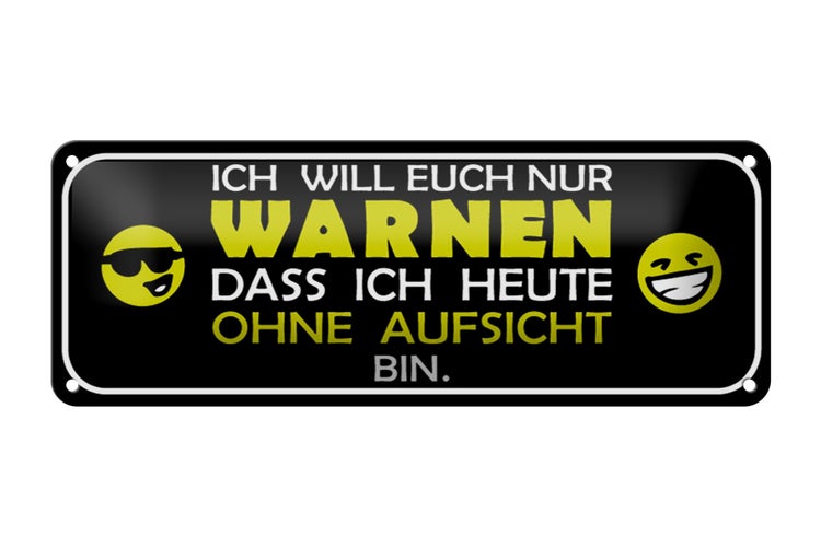 - TitelBlechschild Spruch 27x10cm bin heute ohne Aufsicht Dekoration [ORIGINAL BLECHSCHILD von FEMER]