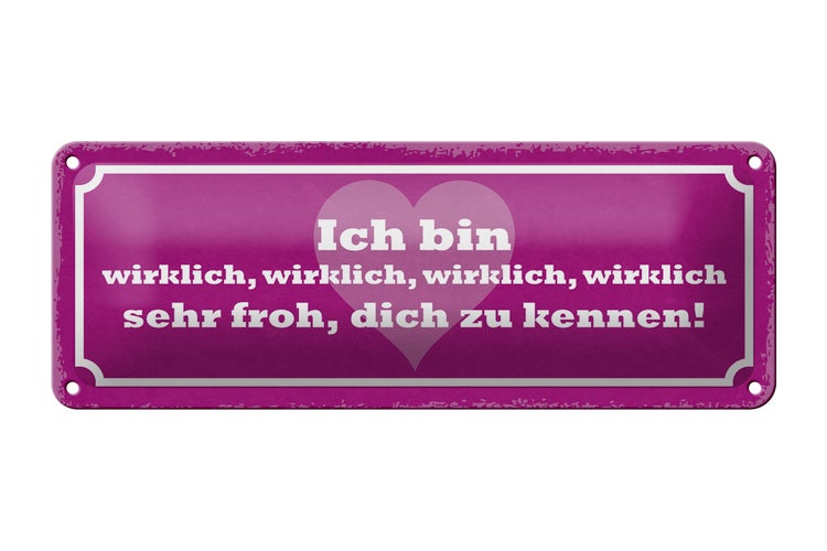 Blechschild Spruch 27x10cm bin wirklich froh dich zu kennen Dekoration