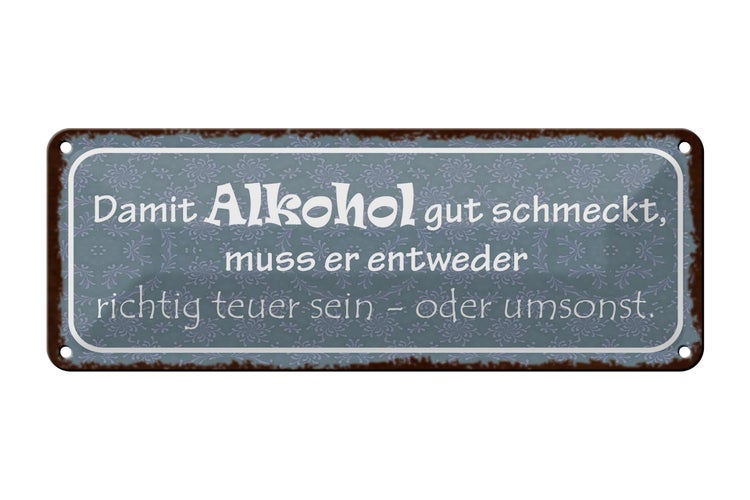 Geschenkidee Egal, ob zu Weihnachten, Geburtstag, Vater oder Muttertag, Hochzeit, eine Einladung zur Party oder Feier, zum Umzug, Karneval, Valentinstag, als Gratulation zur bestandenen Abi Prüfung oder Führerscheinerwerb, zum Jubiläum, als Mitbringsel für die Grillfeier, als Abschiedsgeschenk und vieles mehr … Besondere Überraschung Sie möchten Ihren Freunden, Familie, Arbeitskollegen im Büro, Chef, Schwester, Bruder, Verwandten, Oma oder Opa eine besondere Freude machen? Dann überrasche Sie! Blechschilder mit lustigen Sprüchen und Motiven sind beliebte Artikel, um Ihren Lieblingsmenschen ein Lächeln ins Gesicht zu zaubern. Dekoration Ihrer Wohnung fehlt noch das gewisse Etwas? Dann versuchen Sie es doch mal mit unseren Blechschildern, um Ihre Wohnräume zu schmücken. Blechschilder eigenen sich als Highlight für viele Bereiche: Als Begrüßung am Wohnungs- oder Hauseingang, in der Bar oder Theke, als Tür-Deko oder in der Küche, im Wohnzimmer, Schlafzimmer, Garage, Garten, Hobbyraum oder Werkstatt... Kurzum: jede Wand freut sich über diese Deko!