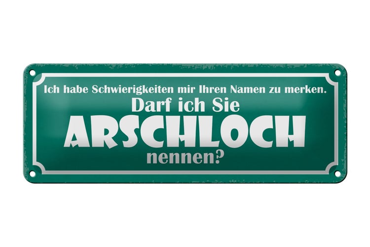 - TitelBlechschild Spruch 27x10cm darf ich Sie Arschloch nennen Dekoration [ORIGINAL BLECHSCHILD von FEMER]