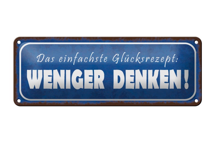 - TitelBlechschild Spruch 27x10cm das Glücksrezept weniger denken Dekoration [ORIGINAL BLECHSCHILD von FEMER]