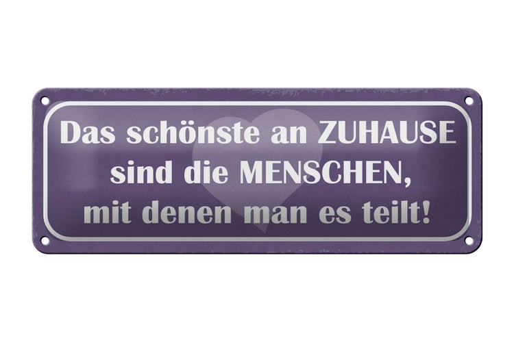 Blechschild Spruch 27x10cm das schönste an Zuhause sind Dekoration