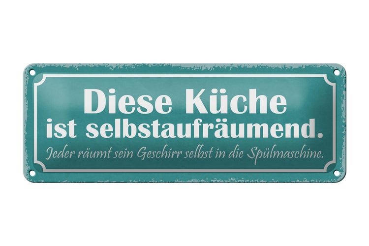 - TitelBlechschild Spruch 27x10cm diese Küche ist selbstaufräumend Dekoration [ORIGINAL BLECHSCHILD von FEMER]