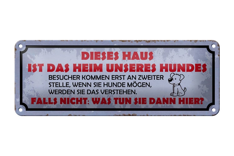 - TitelBlechschild Spruch 27x10cm dieses Haus Heim unseres Hundes Dekoration [ORIGINAL BLECHSCHILD von FEMER]