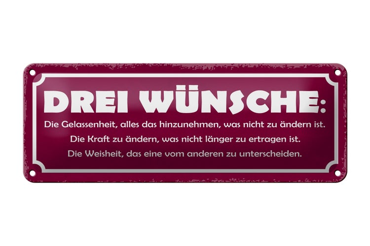 - TitelBlechschild Spruch 27x10cm Drei Wünsche Gelassenheit Kraft Dekoration [ORIGINAL BLECHSCHILD von FEMER]