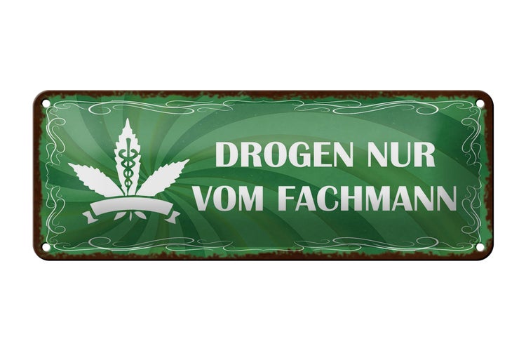 - TitelBlechschild Spruch 27x10cm Drogen nur vom Fachmann Dekoration [ORIGINAL BLECHSCHILD von FEMER]