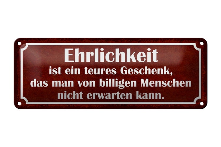 - TitelBlechschild Spruch 27x10cm Ehrlichkeit ist ein teures Geschenk [ORIGINAL BLECHSCHILD von FEMER]