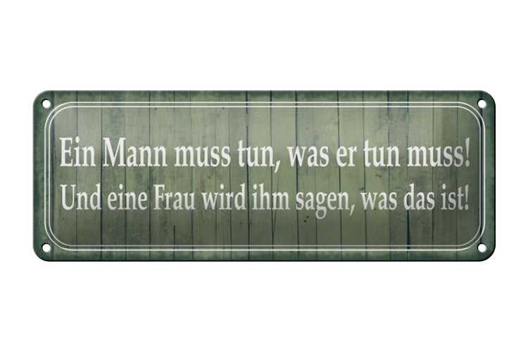 - TitelBlechschild Spruch 27x10cm ein Mann muss tun Frau ihm sagen Dekoration [ORIGINAL BLECHSCHILD von FEMER]