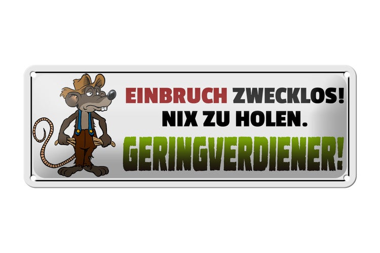 - TitelBlechschild Spruch 27x10cm Einbruch zwecklos Geringverdiener [ORIGINAL BLECHSCHILD von FEMER]