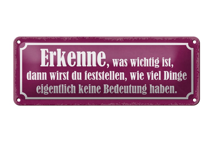 - TitelBlechschild Spruch 27x10cm erkenne was wichtig ist dann Dekoration [ORIGINAL BLECHSCHILD von FEMER]