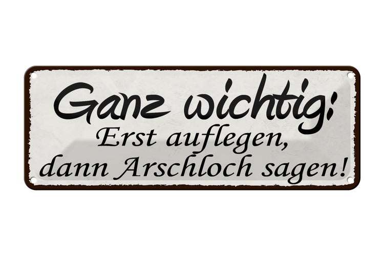 Blechschild Spruch 27x10cm Erst auflegen dann Arschloch Dekoration