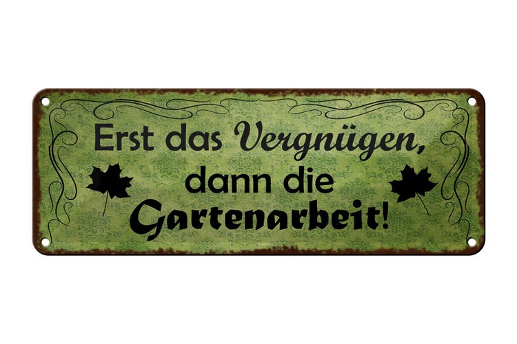 Blechschild Spruch 27x10cm Erst Vergnügen dann Gartenarbeit Dekoration