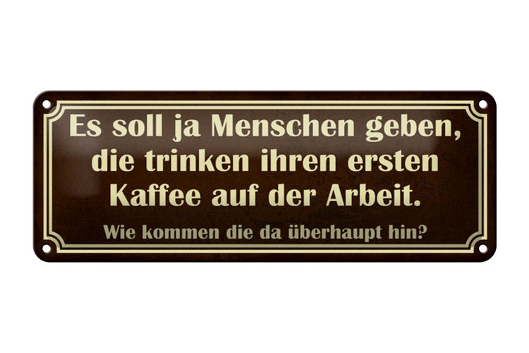 - TitelBlechschild Spruch 27x10cm erster Kaffee auf der Arbeit Dekoration [ORIGINAL BLECHSCHILD von FEMER]