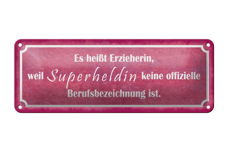 - TitelBlechschild Spruch 27x10cm es heißt Erzieherin Superheldin Dekoration [ORIGINAL BLECHSCHILD von FEMER]