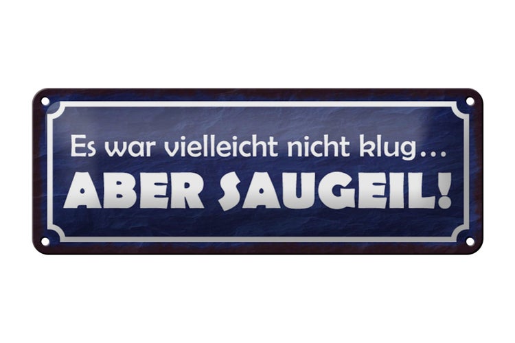 - TitelBlechschild Spruch 27x10cm es war nicht klug aber saugeil Dekoration [ORIGINAL BLECHSCHILD von FEMER]