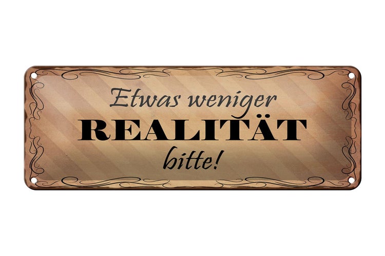 - TitelBlechschild Spruch 27x10cm etwas weniger Realität bitte Dekoration [ORIGINAL BLECHSCHILD von FEMER]