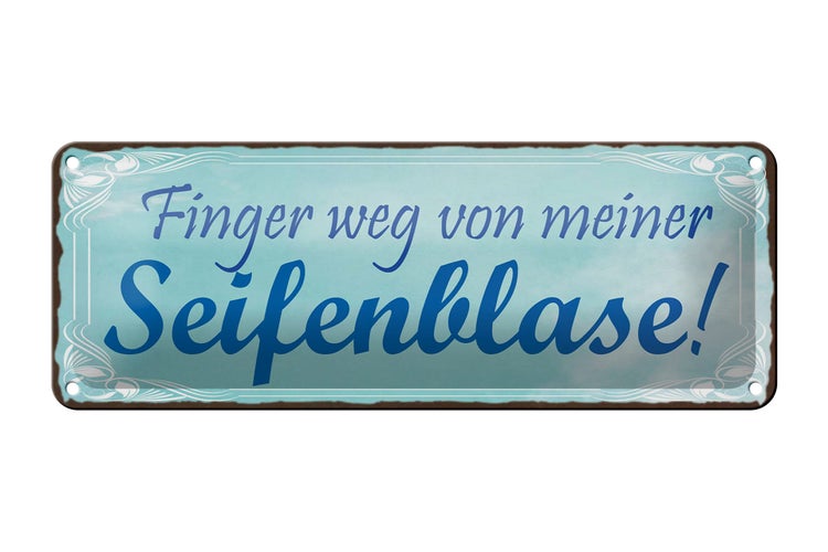 Blechschild Spruch 27x10cm Finger weg von Seifenblase Dekoration