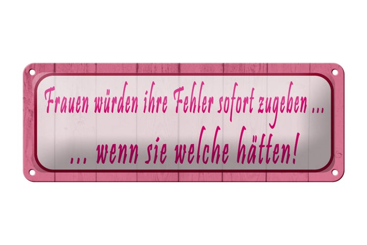 Blechschild Spruch 27x10cm Frauen Fehler sofort zugeben Dekoration