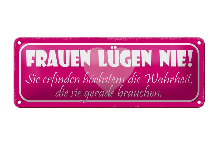 - TitelBlechschild Spruch 27x10cm Frauen lügen nie sie erfinden Dekoration [ORIGINAL BLECHSCHILD von FEMER]