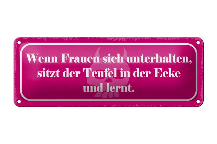 - TitelBlechschild Spruch 27x10cm Frauen unterhalten Teufel lernt Dekoration [ORIGINAL BLECHSCHILD von FEMER]