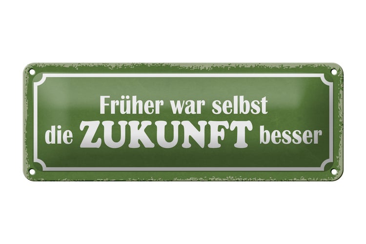 - TitelBlechschild Spruch 27x10cm früher war selbst Zukunft besser Dekoration [ORIGINAL BLECHSCHILD von FEMER]