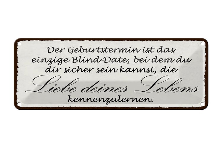 Blechschild Spruch 27x10cm Geburtstermin Liebe des Lebens Dekoration
