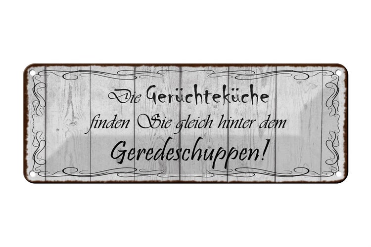 - TitelBlechschild Spruch 27x10cm Gerüchteküche Geredeschuppen Dekoration [ORIGINAL BLECHSCHILD von FEMER]