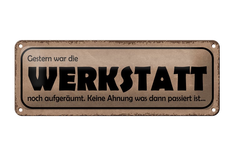 Blechschild Spruch 27x10cm Gestern Werkstatt war aufgeräumt Dekoration