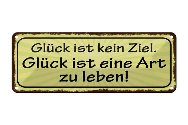 - TitelBlechschild Spruch 27x10cm Glück kein Ziel ist Art zu leben Dekoration [ORIGINAL BLECHSCHILD von FEMER]
