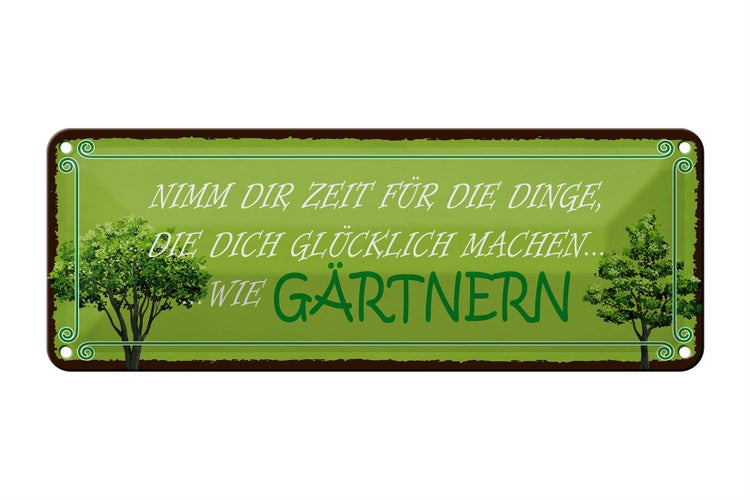 - TitelBlechschild Spruch 27x10cm Glück nimm dir Zeit für Gärtnern Dekoration [ORIGINAL BLECHSCHILD von FEMER]