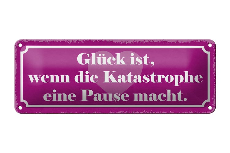 - TitelBlechschild Spruch 27x10cm Glück wenn Katastrophe Pause Dekoration [ORIGINAL BLECHSCHILD von FEMER]