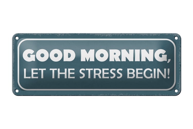 - TitelBlechschild Spruch 27x10cm good morning let stress begin Dekoration [ORIGINAL BLECHSCHILD von FEMER]