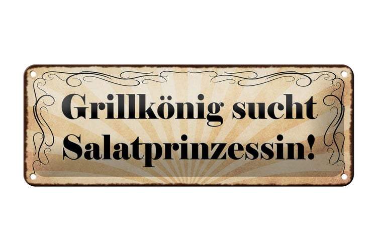 - TitelBlechschild Spruch 27x10cm Grillkönig sucht Salatprinzessin Dekoration [ORIGINAL BLECHSCHILD von FEMER]