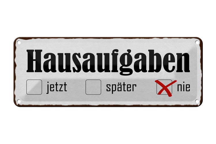 - TitelBlechschild Spruch 27x10cm Hausaufgaben jetzt später nie Dekoration [ORIGINAL BLECHSCHILD von FEMER]