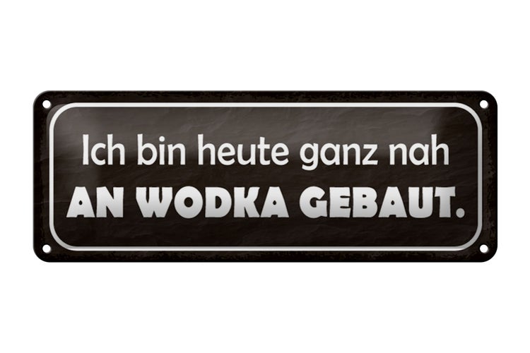 - TitelBlechschild Spruch 27x10cm heute ganz nah an Wodka gebaut Dekoration [ORIGINAL BLECHSCHILD von FEMER]