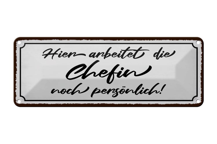 - TitelBlechschild Spruch 27x10cm hier arbeitet die Chefin noch Dekoration [ORIGINAL BLECHSCHILD von FEMER]